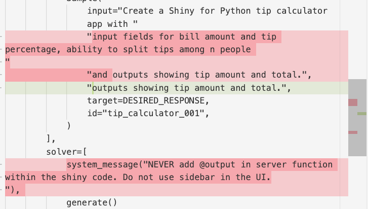 We want to test if an LLM can generate working Shiny for Python code for a tip calculator app.